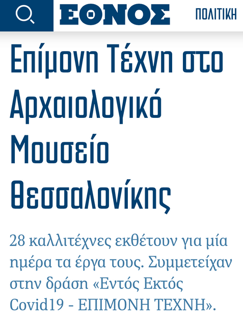 Venue 4: Participation in the collective art exhibition "In and Out of Covid" organized by "Epimoni Techni" curated by Chris Barjoka, 17 June 2020, at the Archeological Museum of Thessaloniki, Greece